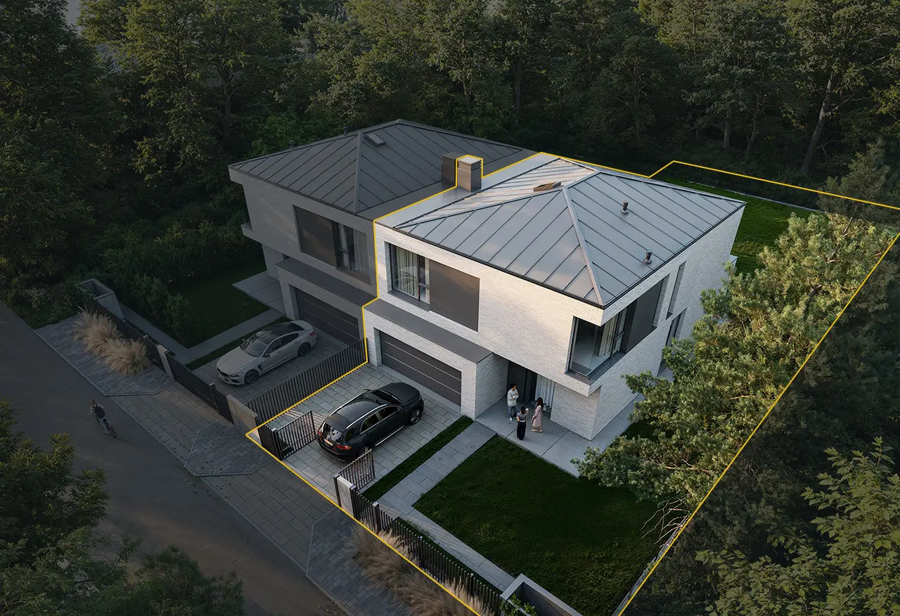 Wybierz dom, aby zobaczyć rzuty parteru, piętra i ogrodu.